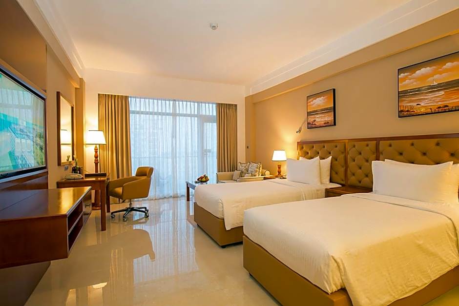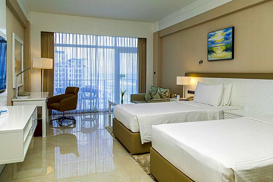 This twin room has a balcony, attached bathroom. Guests have privileged access to the infinity pool & rooftop garden. Complimentary Mini-bar with soft drinks.